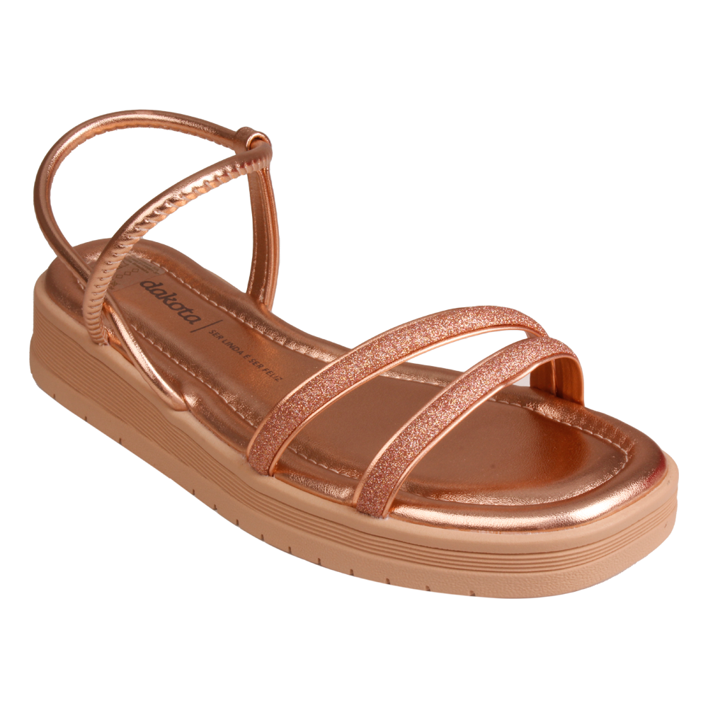 Chegou na Becker Calçados a mais nova Sandália Feminino Dakota Y6962 que foi projetada e fabricada perfeitamente para as mulheres que buscam a sandália perfeita para sua rotina do dia-a-dia e sensacional para arrasar em qualquer tipo de ocasião. A Sandália Dakota Flatform Metalizada é uma combinação perfeita entre estilo e conforto. Seu design moderno destaca a sola flatform de 2,00 cm de altura, proporcionando estabilidade ao caminhar, e é formada por tiras finas com brilhos, acrescentando um toque de glamour às suas produções. Além disso, a sandália é anatômica, o que garante um ajuste perfeito aos pés, oferecendo conforto durante todo o dia. Com calce fácil e prático, esse calçado é composto por tiras maleáveis e sem fechos, que envolvem o tornozelo com suavidade. Seja para um passeio descontraído, um encontro com amigos ou mesmo para compor um look casual elegante, a sandália Dakota é uma excelente escolha. Feita em material sintético de qualidade.