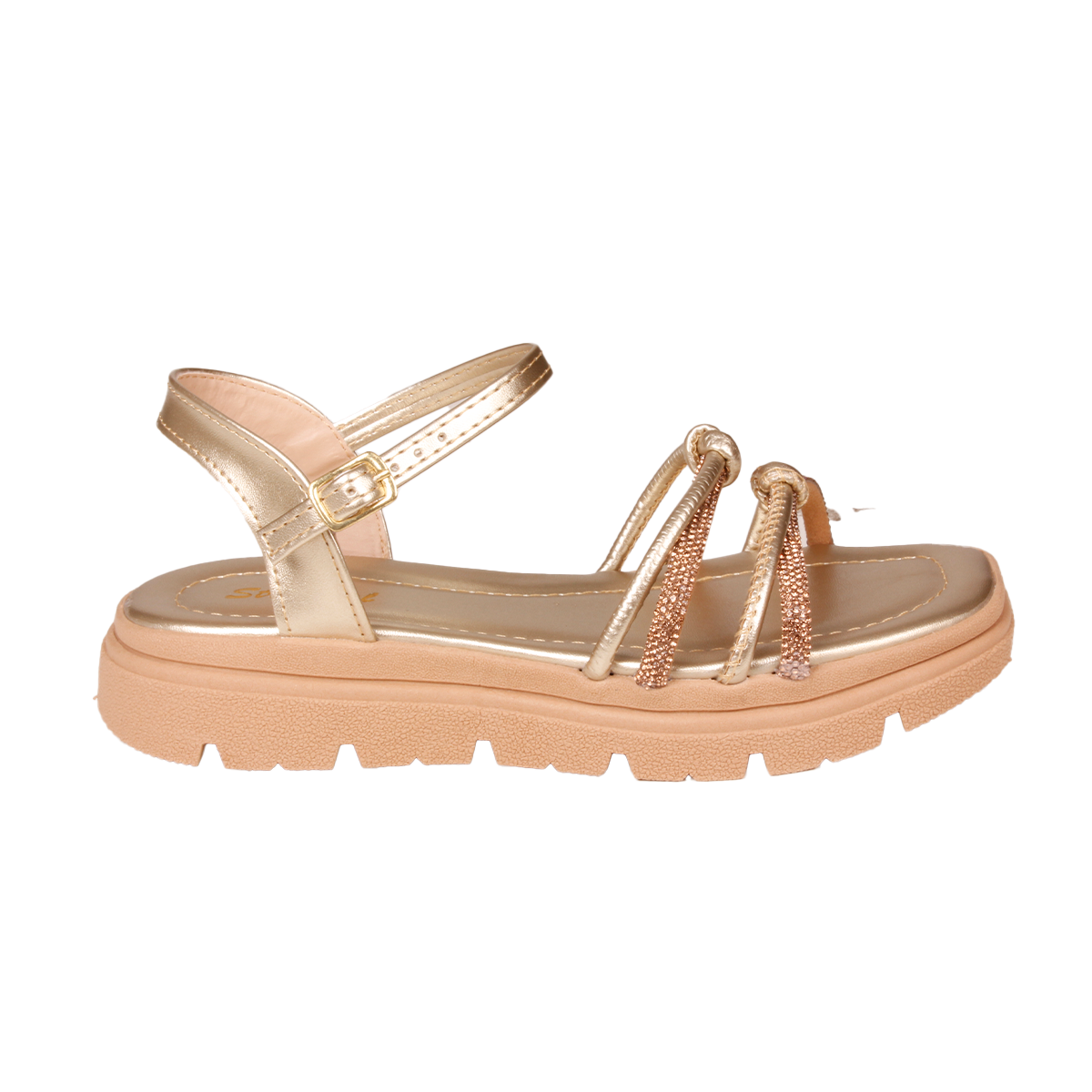 Sandália infantil Streetcal para meninas, unindo o estilo urbano e o conforto divertido. Confeccionada em material sintético resistente e moderno, ela traz a tendência flatform que garante altura com uma base ampla e estável, perfeita para a energia dos pequenos passos. Os vibrantes detalhes em dourado adicionam um toque de brilho e atitude ao visual. O solado de borracha proporciona aderência segura e amortecimento para todas as brincadeiras, enquanto o fechamento em fivela ajustável garante um fit personalizado e confortável. Ideal para compor looks cheios de personalidade e estilo street para as meninas que amam se expressar.