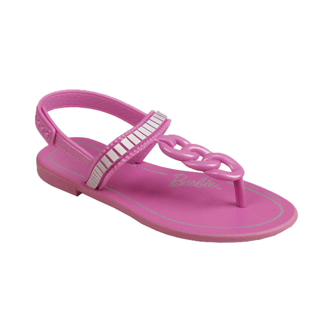 A sandália vem no modelo clássico salomé. A tira tem volumetria de correntes e na tira de fechamento peças que remetem ao strass. Acompanha o fantástico avião da Barbie no tamanho da boneca, com texturas e volumetrias realistas. A sandália proporciona muito conforto, qualidade, estilo e durabilidade, aproveite!